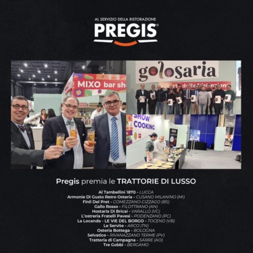 Pregis conferma la propria presenza all’edizione 2022 di Golosaria, evento sul mondo wine&food tra i più riusciti, con focus specifico sulla ristorazione di alta qualità, che si è appena concluso presso l’Allianz MiCo – Milano Convention Centre. Attraverso la superba conduzione dell’evento di Paolo Massobrio e Marco Gatti, autori della Guida ai ristoranti d’Italia “Il Golosario”, da cui nasce appunto la filosofia che anima l’happening milanese, la tre giorni ha visto avvicendarsi tra premiazioni e showcooking un numero considerevole di ristoranti e trattorie, accomunati dall’eccellente qualità dell’offerta di cibo e vini, certificata dalla recensione della guida. Pregis, che da sempre si distingue per la qualità assoluta della propria offerta, non poteva mancare a questo appuntamento: un’avvincente showcooking dello Chef Giorgio De Fabiani ha infatti messo in campo tre prodotti a marchio Pregis nella realizzazione di un piatto creativo e gustoso. Carne Salada “Arte Trentina”, corolle di carciofo “Golden Gourmet” e crudo di Parma stagionato 30 mesi “Perna Nobilis”, questi gli ingredienti della creazione di Chef De Fabiani che ha unito la modernità della “spuma di crudo” con la tradizione di montagna della carne salada leggermente brasata ed accompagnata da un eccellente contorno di carciofi selezionati, chips di pane croccante e petali di cipolla di Tropea. La partecipazione Pregis è poi proseguita sul palco dell’Agorà, dove sono state premiate le migliori “Trattorie di lusso”, una tipologia di ristorazione che affonda le radici nella millenaria cultura gastronomica del nostro paese e che, come nel caso degli otto premiati da Pregis, nasconde oggi dei veri tesori da gourmet.